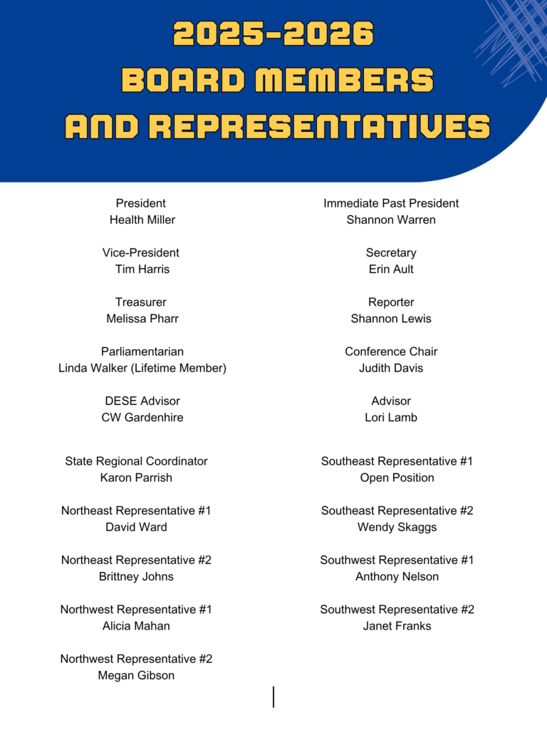 The following board positions will be voted on during the summer conference July 8-10, 2026 in Jonesboro at The Embassy. Do you have an interest in serving? Please click HERE to submit your nomination form by June 1, 2026.